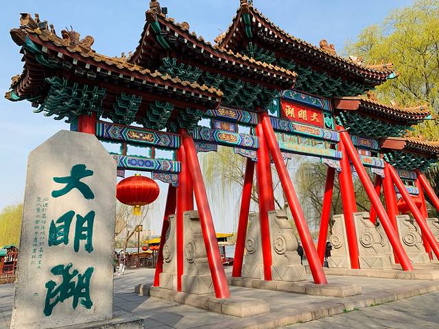 之后骑单车前往鼎鼎有名的大明湖,在小时候因“还珠格格”真的太太太出名啦,大明湖畔的……!!!哈哈哈,整个大明湖很大,逛了有两个小时。吹吹风晒晒太阳很舒服😌。