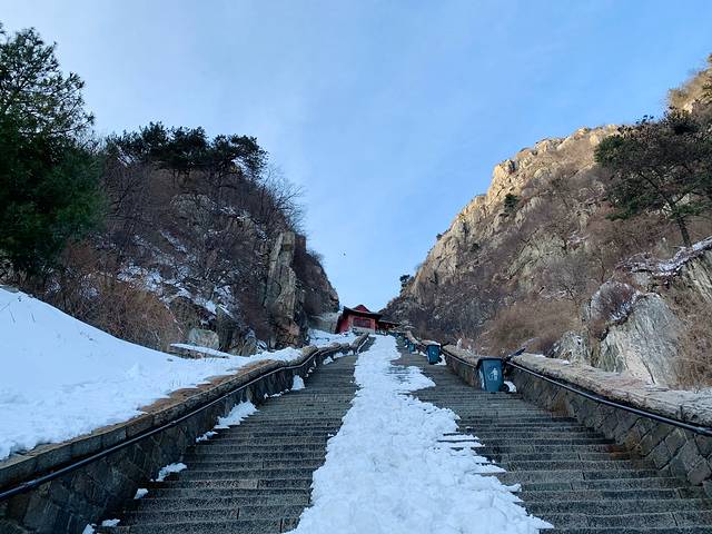我当天到了泰山,在山脚下找了一个便利店寄存了行李(几乎每家商店都可以寄存,不用担心)。想着冬季山上还结冰,为了安全起见不夜爬了。