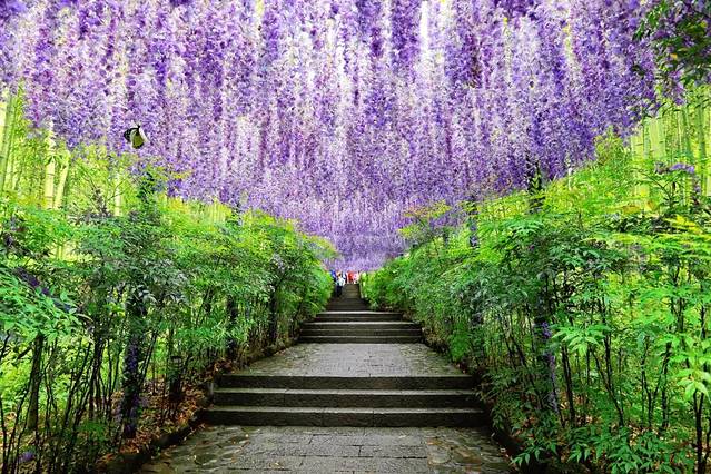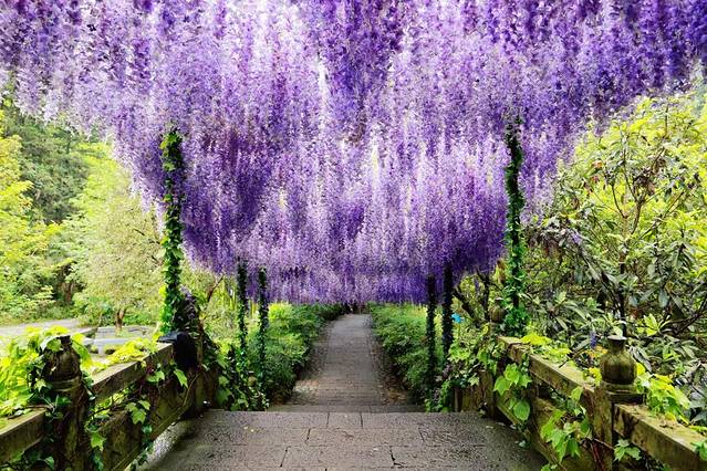 进了景区的大门,迎面是一个美炸了的紫藤花长廊,上面挂满了紫藤花,瞬间就被吸引住了!