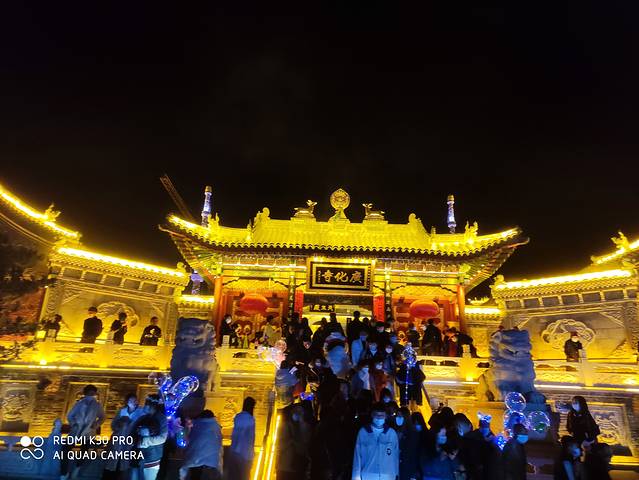 广化寺,晚上灯光打起来,金碧辉煌的,人声鼎沸,摩肩擦踵热闹的很,一副人间盛世的好景象。