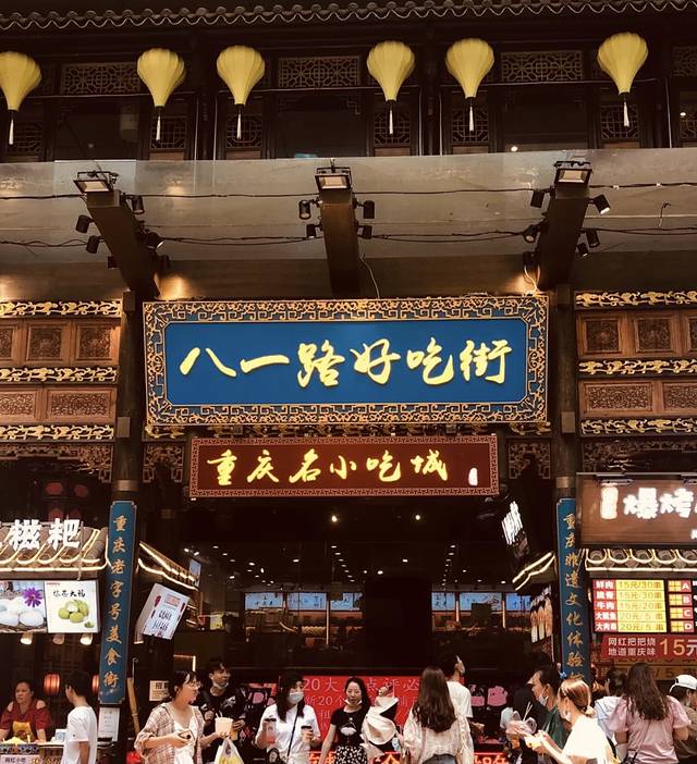 二、八一好吃街:八一好吃街就在解放碑旁边,里面有各式各样的吃的,可以选择自己喜欢吃的购买~