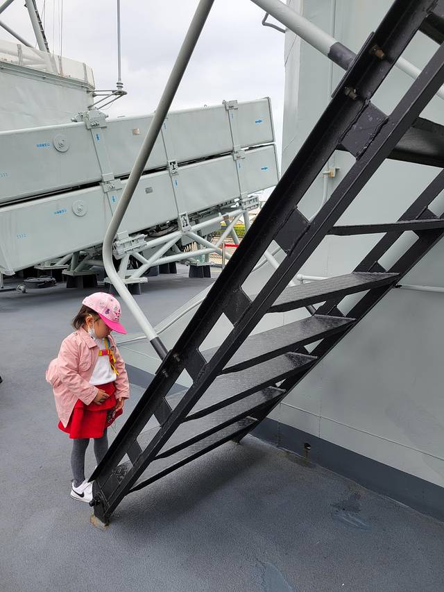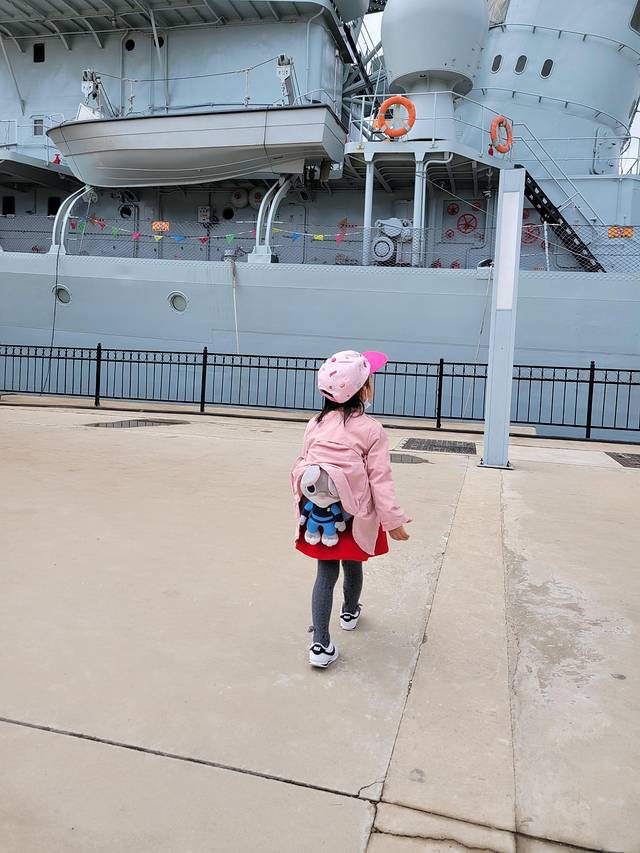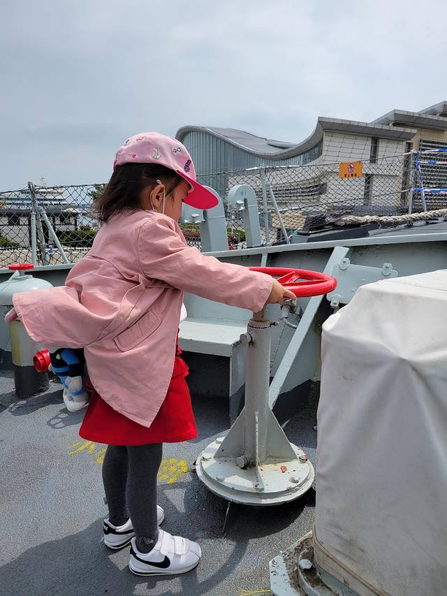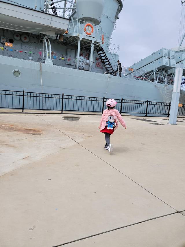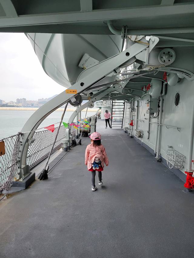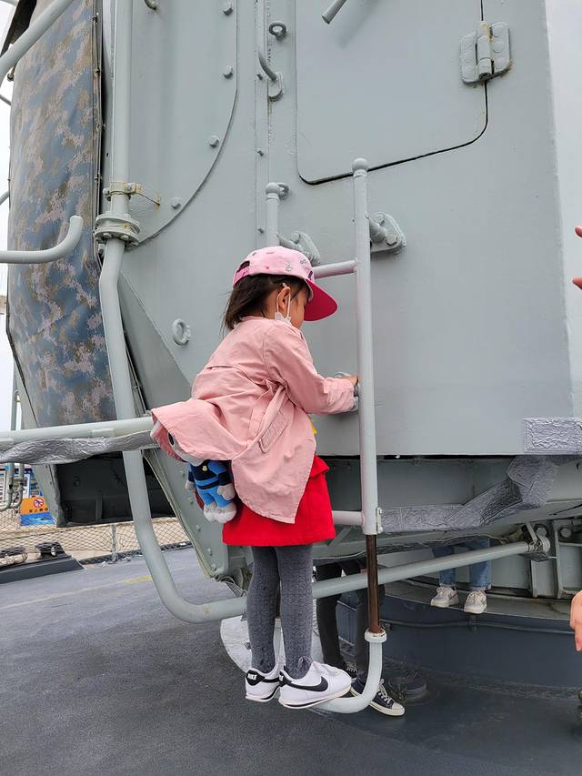 没进来之前,远远的她看见了军舰,就兴奋得呼喊着“妈妈~快看,那里有个大船,这个大船好大呀!”