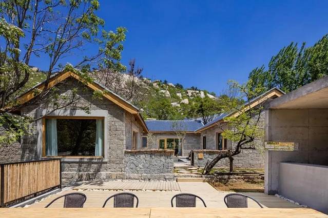 沂蒙山舍在沂蒙山下的蒙山人家景区之内,从龟蒙景区到蒙山人家只需要20分钟左右的车程。山舍有着儿时农家小院的模样,朴素却又贴近生活。