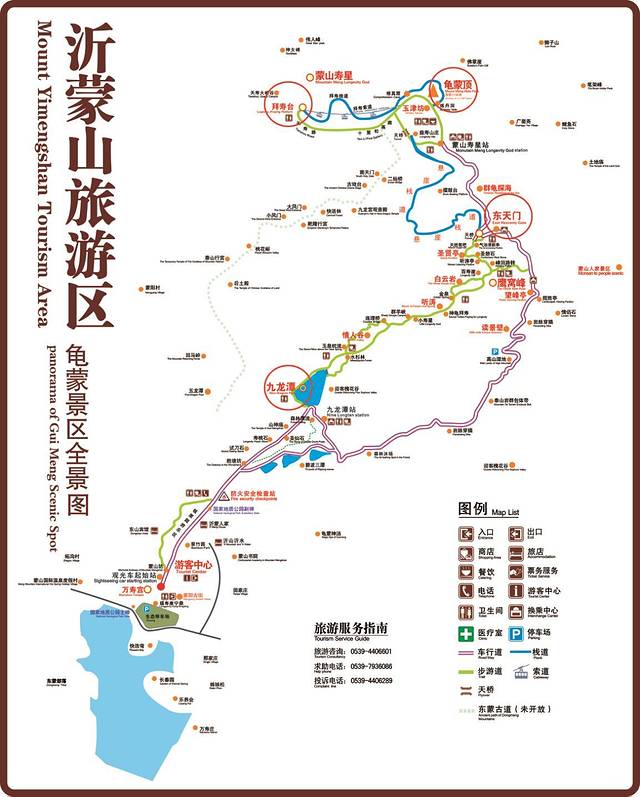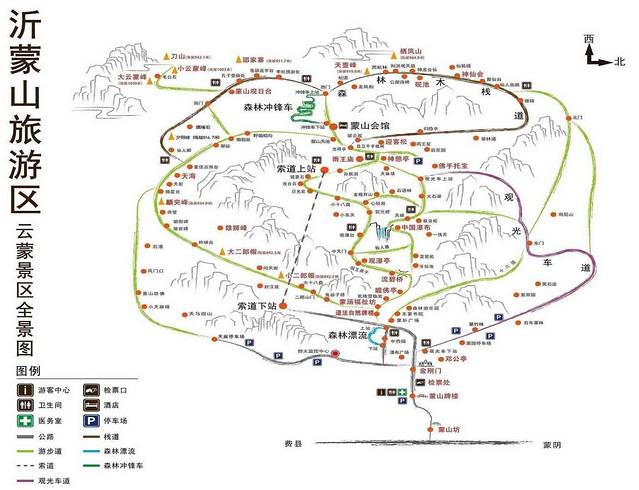 用脚步丈量蒙山,步行上下山,体验挑战极限,战胜自我的乐趣,沿途欣赏美景的同时还可以让您真正体会到充满活力,富有挑战的有氧登山之行景区导览图