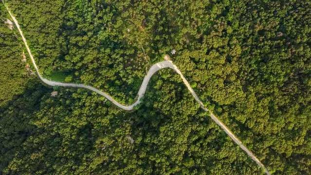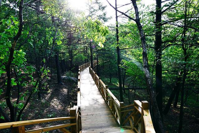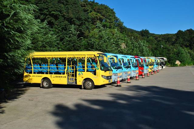 上山最便捷的方式,莫过于乘坐森林观光车了40元/人,坐上车,长长的车道被绿意遮掩,仿佛在森林间穿行,偶尔的一个拐角处,你能透过车窗看到远处的青山成群,悠闲而惬意。