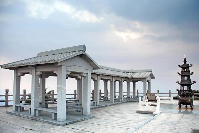 走完木栈道,马上就到达山顶了。达到山顶前,首先看到的的是“龟蒙顶”这三个摩崖石刻。山顶的名字为什么叫做龟蒙顶呢?(因为整个山顶从高空俯瞰酷似一只巨大的神龟俯卧云端因此叫做龟蒙顶)