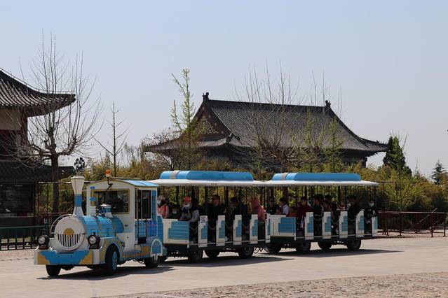 走出万寿宫,我们来到了游客服务中心。目前游客服务中心在提升改造,指引牌指引售票点在前方800米。景区在这段路上放上了小火车样式的摆渡车(10元/1位)。