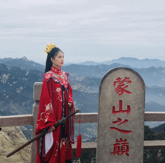 本想给大家拍个蒙山之巅,正巧有人在拍摄。(小姐姐这是COS的紫霞仙子吗?)