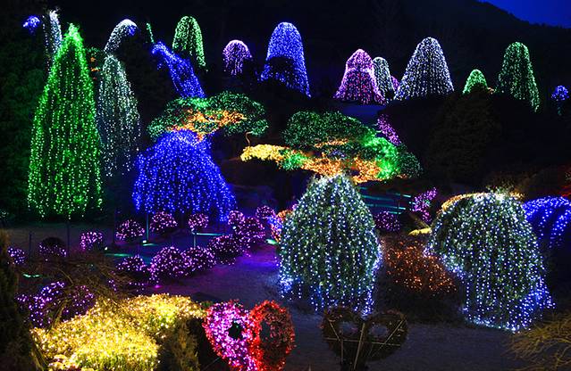 晨静树木园最大的魅力源于它在一年四季都会举行各种丰富多彩,可让游客感受到它美丽风韵的庆典活动。春、秋的鲜花庆典,冬季的五色星光庭园展都会为游客留下美好的回忆,特别是冬季的五色星光庭园展,灯光开启的那一刻仿佛置身于童话世界一般,暗空中五色的星光,点缀整个园区,如诗如画,令人陶醉。