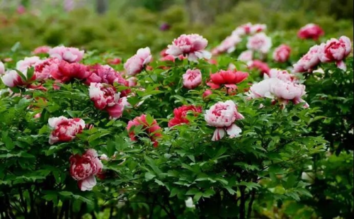 牡丹园里,那朵朵次第怒放的牡丹花,与星星点点迟开的油菜花相映,把周边山麓装扮得更加俊秀,宛如一幅田野风光画卷。