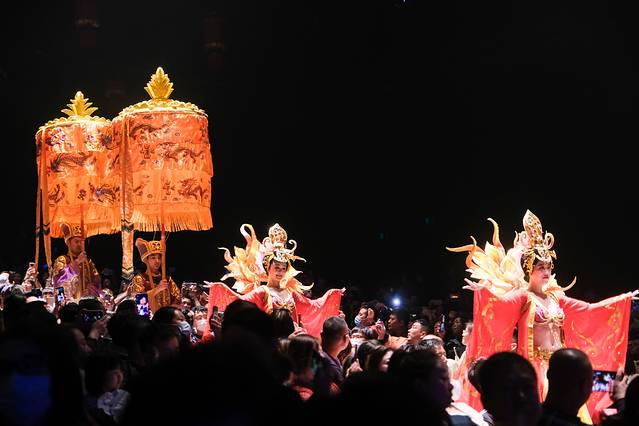 佛僧祈福,舞娘起舞,还有杂技,很有牌面。场面丝毫不亚于电视里的,纷纷献上珍奇宝物为皇帝祝寿了。