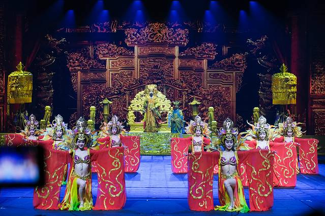 目前中国三大演出之一的「千古情」被称作是一生必看的一场演出。总导演黄巧灵先生十年磨一剑,精心的打造了宋城千古情,之后在华夏大地遍地开花。