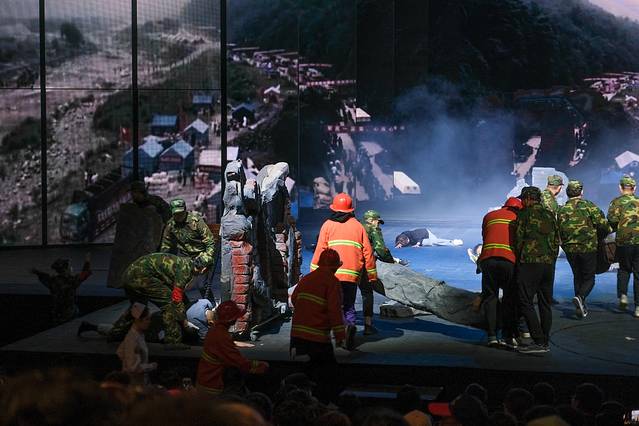 看完【千古情】,一定不要错过【大地震】。真的很感人哦。现场还会招募志愿者,可以选择护士或者消防员或者军人,演出完毕后还会发个证书,很有纪念意义。但是,会趴地上,衣服会脏的呦,别问我为什么会知道。