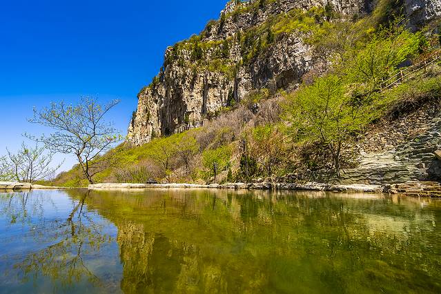 走过长长的吊桥,就开始爬山了,这次出行天气真的特别给力,山清水秀的格外宜人。景点还算集中,有一个东夷文化的展览馆挺好玩~再往上走会遇见春秋湖、映佛池,水面倒影像画一样。
