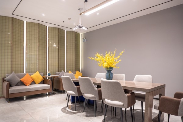 环顾四周,发现这家7天酒店大堂里增加了好多人性化的设施:智能售卖机里,有各种饮料和零食,可以随时随地带走心仪好物;由许多沙发、桌椅组成的灵活共享空间,让入住旅客们多了一个休闲的区域。除了视觉的美观之外,能和朋友在这里聊天、见面,也是让人很放松又舒适的空间。