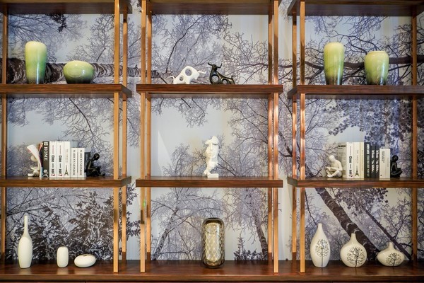 一旁的便捷储物柜有艺术品做装饰,同时也有收纳的功能。