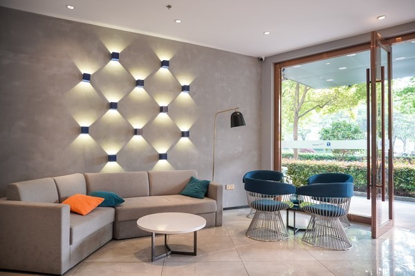 因为这家7天酒店经过了全新的升级换代,抵达前我还是非常期待的,大门的设计采用银灰色,很年轻、现代的感觉。刚一走进酒店的大堂,入目就是一片蓝黄的配色,很清新靓丽,一改曾经那种沉闷的商务风,心情也跟着明亮起来。