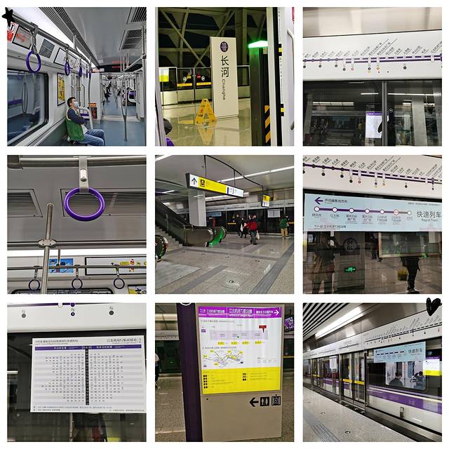 站内指示牌色彩鲜明,更易识别。列车更大更长,一排可坐八人。有两段地上,途径洪崖洞,可看无敌夜景!不愧是5D魔幻城市!