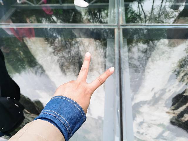 大概是因为刚下完雨,人又有点多,走在玻璃上面并没有特殊的感觉,一点害怕的感觉都没有。