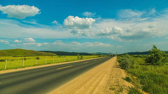蓝天白云公路向远方延伸,好像永远没有尽头。