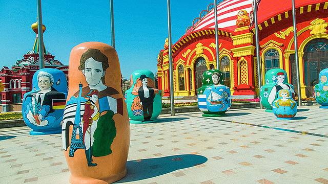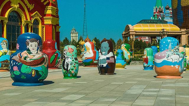 满洲里 市 俄罗斯 套娃景区景区具中、俄、蒙三国风情。 整个景区的规划面积是54万平方米,由 俄罗斯 套娃广场、 俄罗斯 艺术博物馆、 东欧 异韵风情园三部分组成。