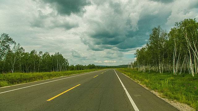 应该离 阿尔山 越来越近了,道路两旁开始出现的灌木,应该在不远的前方有着森林等着我们。