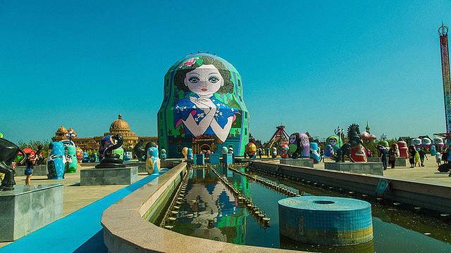 从市区前往国门或机场的路上都会经过这处造型夸张的 俄罗斯 风格建筑群,彩色的洋葱尖顶和巨大的套娃是这里最醒目的标志。景区内部可以游览的内容不多,大多数建筑物内都是千篇一律的纪念品商店,如果你不愿意再额外花钱去体验 俄罗斯 马戏或俄蒙演艺西餐,在景区门口停留拍照是最具性价比的参观方式。