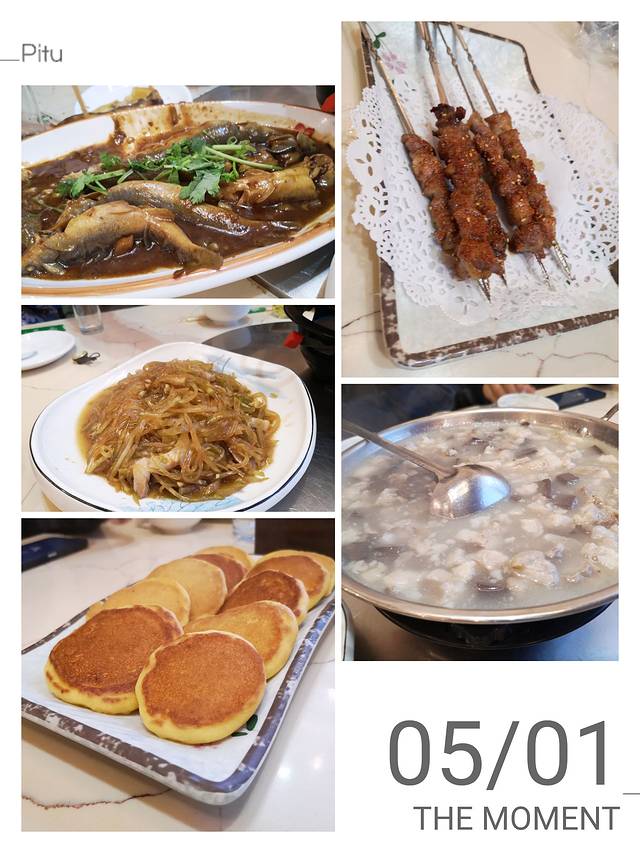 白天体力耗尽!晚餐很随意,酒店附近基本都是新开的烧烤店,这个地方的特色是羊汤。可惜朋友不吃羊,不能尝尝羊肉火锅。小店的羊汤味道一般,这个季节山野菜、江鱼还不错。