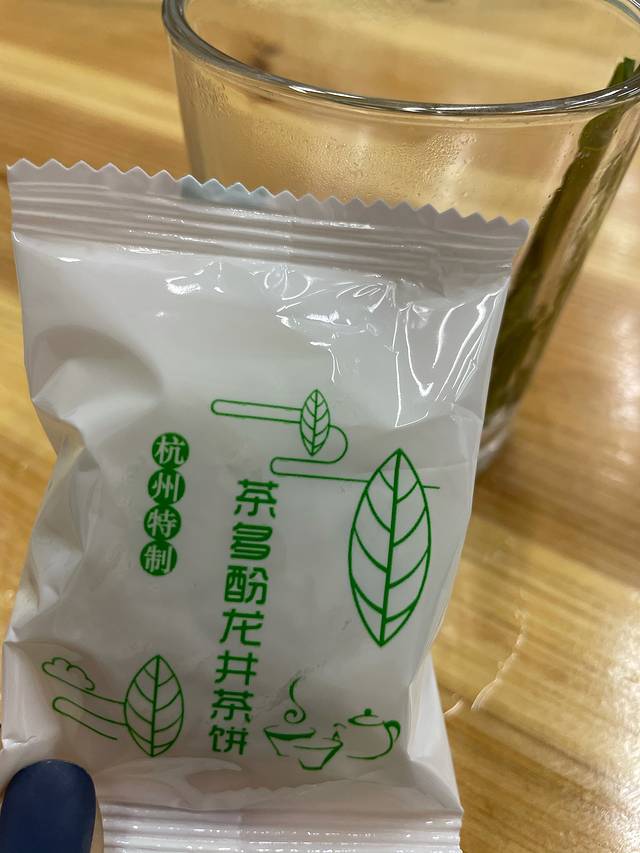 吃饭送的小饼干,用茶叶做的,淡淡的茶香,软糯可口,我爸还买了6盒,100块,带回家给小外甥吃,这次没带他出来都哭鼻子了哈哈