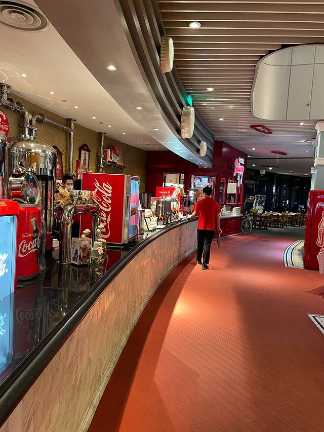 可口可乐主题餐厅,有亲子游戏区,适合拍照。我们的行程是包含这里的一顿自助餐,但是只有一个小时的吃饭时间,不然登东方明珠时间就来不及了。吃的东西也挺多的,是一个长条形状的餐厅,从头走到尾都得走个几分钟。但是我爸想吃蔬菜,我是没有找到哈哈。