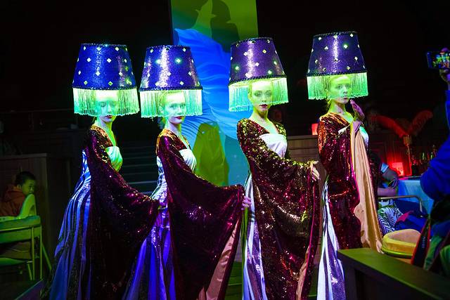阿根廷、古巴、乌克兰、俄罗斯等多国演员的热力奉献,酣畅淋漓、劲爆十足!彩裙翩跹,从天而降的美洲少女风韵娉婷,演绎着一场盛大的南美洲“空中芭蕾”。演员舞动着将餐食送到餐桌,你可以边欣赏舞台表演,边吃东西。视听与味蕾的盛宴,美食与热舞皆不可辜负,尽情洋溢你的快乐吧!