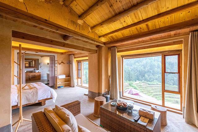 在上堡梯田,有许多美宿可以选择,此行入住了“大隐于市”的木梓排民宿。木梓排是由当地民居改建而成的特色民宿 ,它独占了上堡的山乡美景 ,民宿与周围的青山绿水相辅相成 ,在房间内就能看到梯田的美景 。在这里,可以体验“悠然见南山”的田园清新,也可以感受“而无车马喧”的村野安宁。