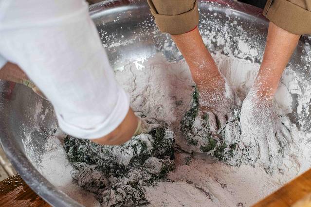 在上堡梯田最不能错过的美食当属艾米果,艾米果是江西赣北赣南都有的特色小吃,它的主要原料就是糯米和艾草,制成以后外表为深绿色,口感细滑有粘性,风味独特,当地的很多人都喜欢吃,艾米果不但味道诱人,营养价值也很高。游客在上堡还可以亲身参与到美食的制作过程中,体验制做艾叶米果、黄元米果以及手工磨豆腐,体会自给自足的乐趣。