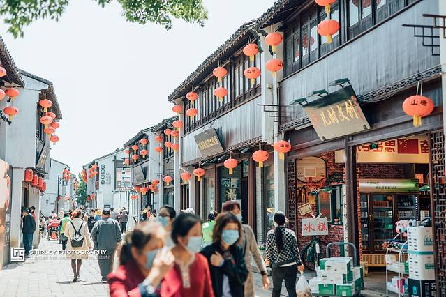 景区内商铺鳞次栉比,游客也是摩肩接踵。商铺多为贩卖美食,从老字号餐厅到苏式小吃,毫无疑问这里是吃货的天堂。