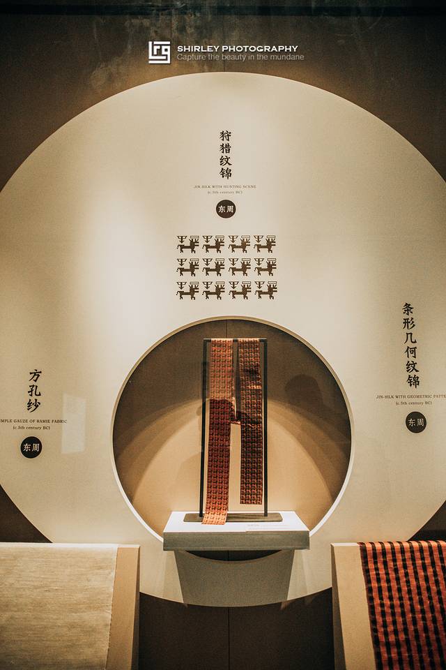古代厅的陈列浓缩了中华七千年的丝绸文明史,以实物为主,图片、场景为辅,展示了中国丝绸的辉煌历程。除了春秋战国、两汉、唐代丝绸文物复制品;展柜里陈列的、墓葬出土的明代服饰尤为珍贵。对于汉服爱好者来说,能近距离观赏正统的明代衣冠,是非常过瘾的视觉盛宴。