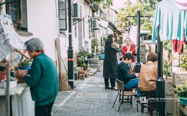 从耦园出来后,黄昏时分漫步平江路老街,挂着相机信步闲逛。本地居民骑着电动车往来,车筐里装着葱蒜和菜。有姑娘穿着戏服,招徕游客到戏楼听昆曲,也有老阿姨擎着收音机,河边听评弹。 夕阳草树,寻常巷陌,熙熙攘攘,确是人间烟火地。