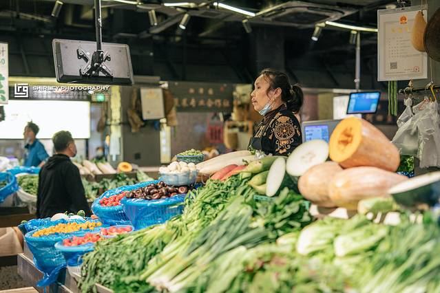 这个干净整洁的菜市场,除了满足当地市民每日采买工作以外,还加入了暖心的咖啡馆、水果、看书、鲜花