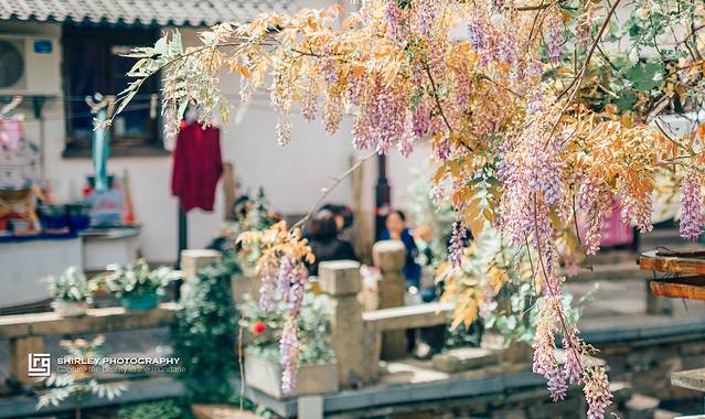 水岸驿站旁的紫藤开到了尾声,一阵风吹来,点点花瓣如飞雪洒进河道中;紫藤的背后,是枕河人家偶尔传来的欢声笑语。