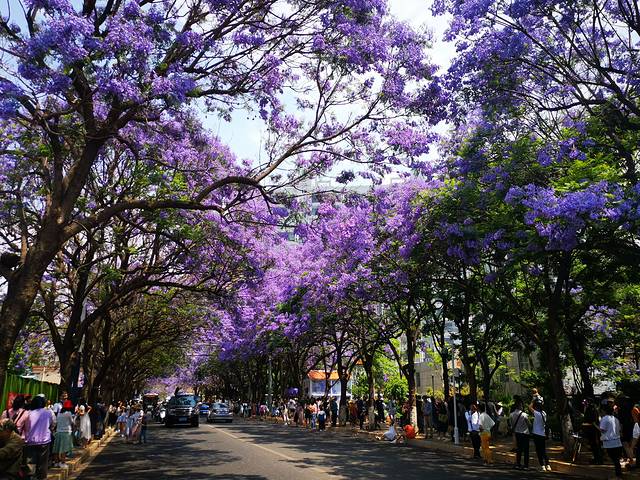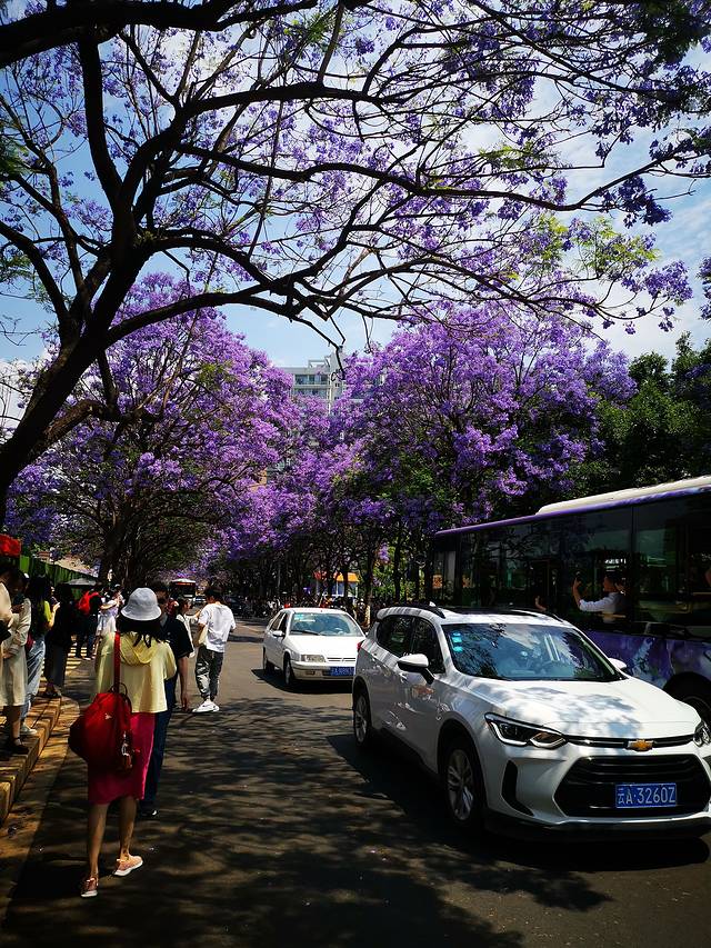 取道昆明去看盛花期的蓝花楹,现在而今眼目下,用李白清的老话说,网红打卡地,都是人车如织,其实就街边几树花,吵作为之,要不是领导有兴趣,,才不上那个当。更何况世界上再美的风景,只要人头攒动,接肩磨踪,就跟赶场别无二致。