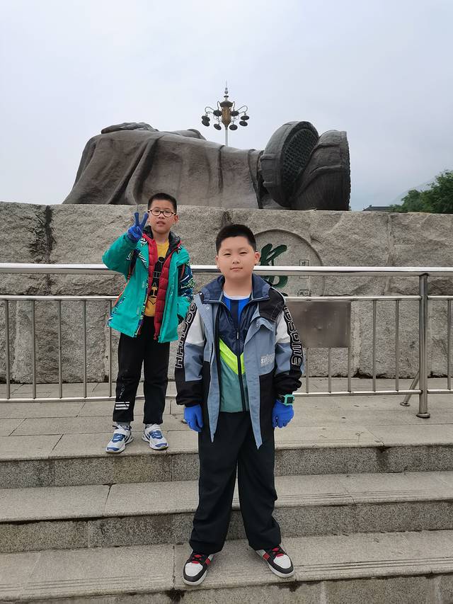 网上搜了一下华山门口的巨大雕像。由于人太多了,都没办法给孩子好好照张照片,于是乎跑到大脚丫子方向,给孩子们照了个开工照。此刻已经11点了,由此拉开漫漫爬山路的序幕…