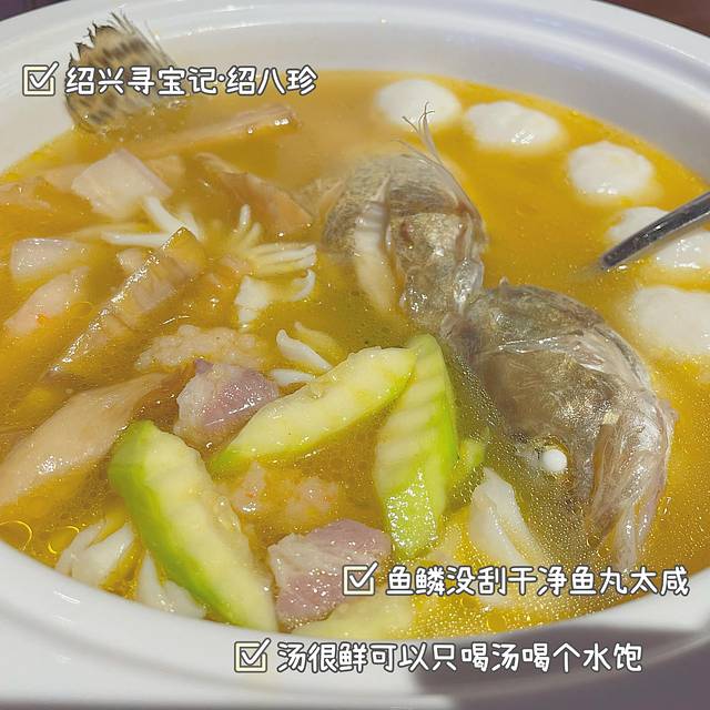 108元/份 绍八珍,汤还是挺好喝的,但是里面的那几个鱼丸真的能咸死个人!我一入口差点以为它们是盐水兑的,实在吃不下去。。。其他的配料正常发挥,但是鱼丸实在是太煞风景了!