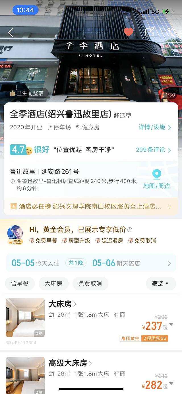 3号和4号都是住在鲁迅故居旁边的这家全季里,干净且便捷,离鲁迅故里和沈园景区走路十分钟不到,五一时候的价格会比平时贵100左右
