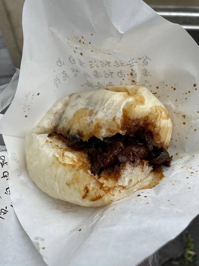 7元/个的酒酿馒头夹干菜笋肉,就是往原味的酒酿馒头里加了梅干菜焖肉,热腾腾的馒头里夹着软烂的五花肉,再配上脆脆的笋干和干菜,一口咬下去真的绝了!(就是吃到最后还是有点点咸