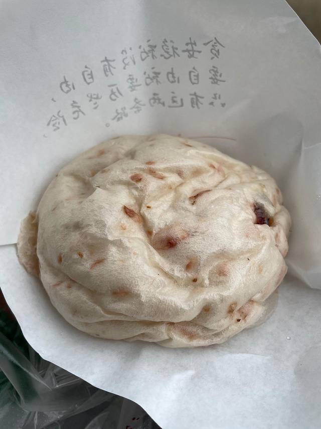 3元/个的玫瑰花酒酿馒头,看古镇里溜达的时候看排队人很多所以买了两个,非常宣软,玫瑰味基本没有,酒味有一点点,好吃的。