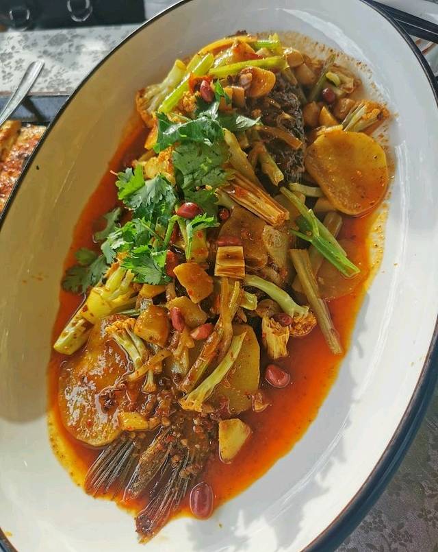 在这飞水触花的旁边,遇到了束河古镇人气最高的,口碑最好的餐厅了,正好也饿着,就进去吃了一餐,美食确实做得很不赖,味道好,分量也很足,服务员超级热情的,服务态度太好了,超级赞,环境更是一绝,门口有很多鲜花,还有小溪流过,感觉太赞了,这家餐厅超级多的明星到丽江到来吃的特色美食餐厅,强烈推荐!