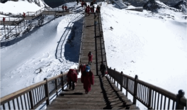 排队做缆车抵达海拔4506海拔的雪山 观景台 。