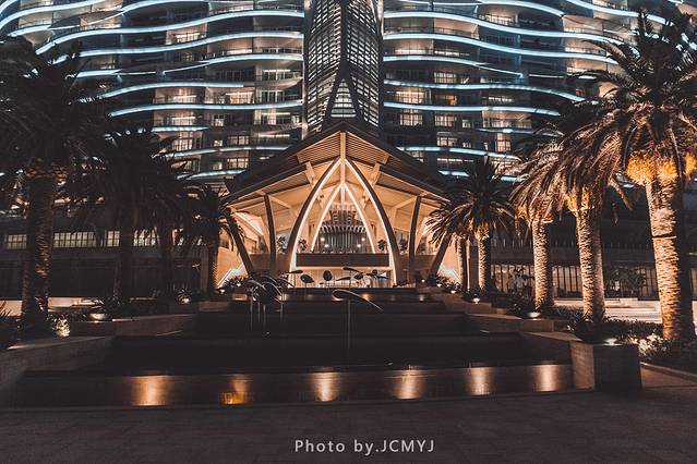 如果说海湾是三亚的标志,那么在海湾边的酒店就是非常值得推荐的体验,所以我们去了海棠湾的红树林酒店,夜幕下的酒店实在太美了。