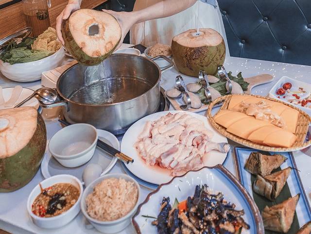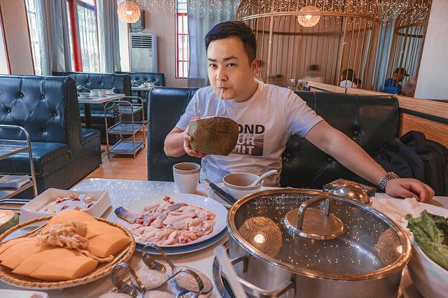 体验后,我们觉得整个火锅没有那么的甜,觉得适合重口味的我们,椰子和文昌鸡完美结合,让肉质特别的鲜美,当然要注意的是锅不要一直煮,因为煮时间长了真的比较甜