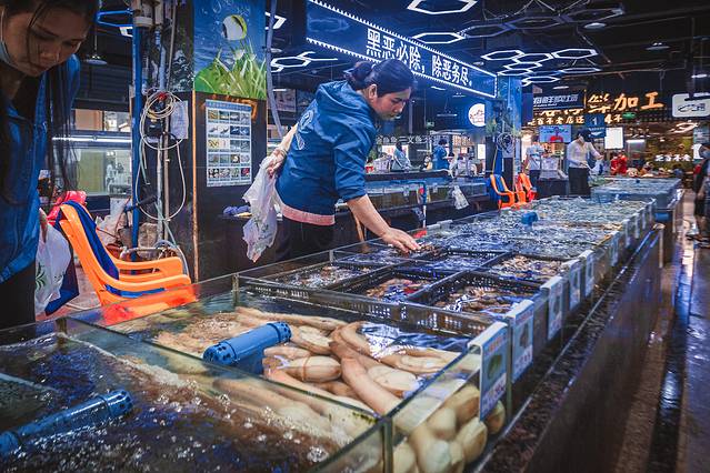 这里是吃海鲜和我们心中想的不一样,首先自己去挑选购买海鲜,然后去到店里加工