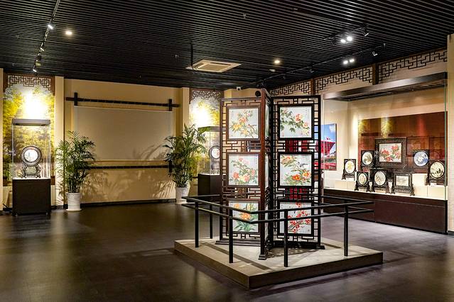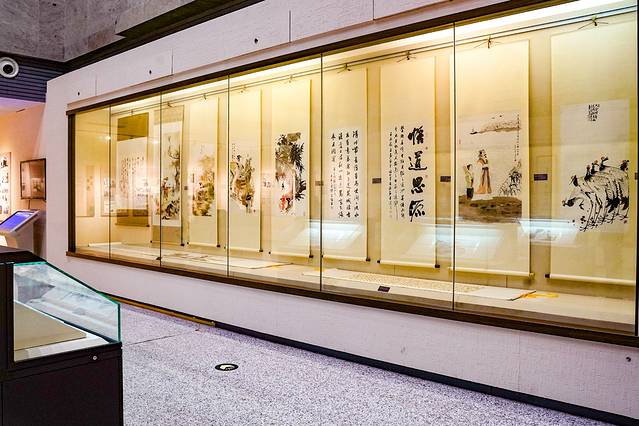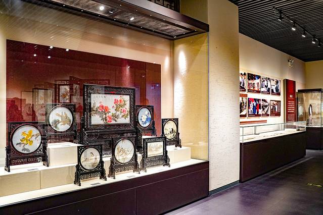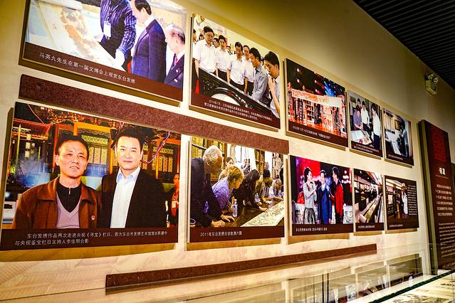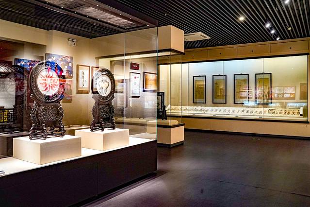 博物馆可以分为两大类。其一,一楼的四个展厅——序厅、中国发绣艺术之乡厅、中国书画艺术之乡厅、中国少儿二胡艺术之乡厅,这四个展厅主要展示了东台的历史轮廓,包括一些浮雕、石碑、书画和二胡艺术等,从这些斑驳的印记中可以看到东台的复苏、复兴和复荣。